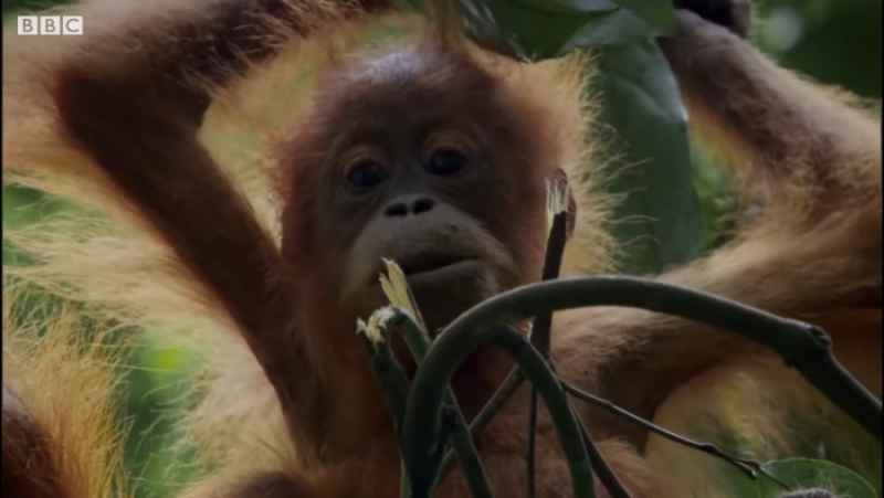 پس از انسان، اورانگوتان‌ها در مقایسه با تمام نخستی‌ها (Primates)، به مدت طولانی‌تری از فرزندان خود محافظت می‌کنند. یک اورانگوتان جوان مانند این ماده اورانگوتان‌ سوماترایی، تا ۹ سال در کنار مادر خود می‌ماند و در این‌ مدت هر آنچه را که برای زندگی در جنگل بارانی نیاز دارد می‌آموزد. به عنوان مثال اون یاد می‌گیرد که کدام میوه‌ها خوراکی هستند و از کدام گیاهان باید بپرهیزد، می‌آموزد که چگونه یک میوه‌ی رسیده را از میوه‌ای نارس تشخیص دهد، چگونه حشراتی مانند مورچه‌ها را شکار کند و برای شکار آن‌ها ابزار بسازد، چگونه در امنیت بالای درختان آب پیدا کند، چگونه در زمان استراحت برای خود بستری از شاخ و برگ درختان تهیه کند و یا چگونه هنگام باران، یک چتر بسازد.
