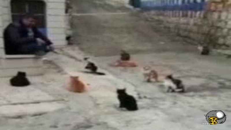 مردی نشسته گربه ها رو نصیحت #گربه hasan