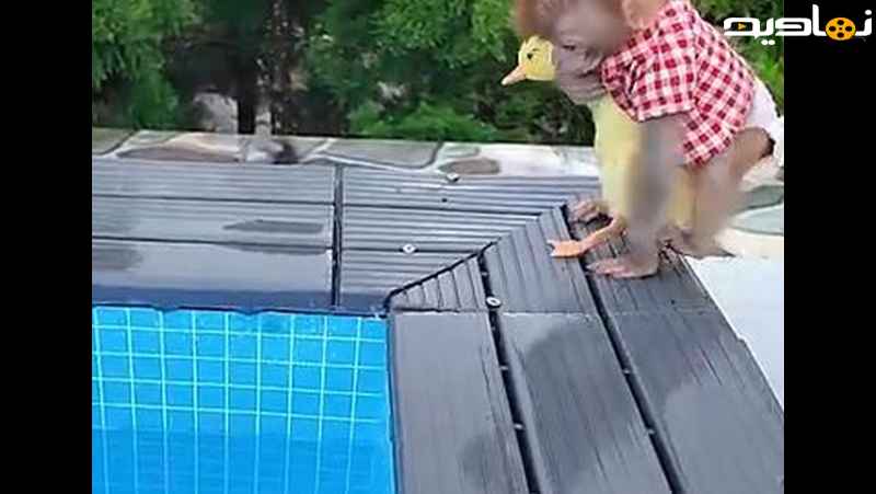شادی با جوجه اردک شنا می کند