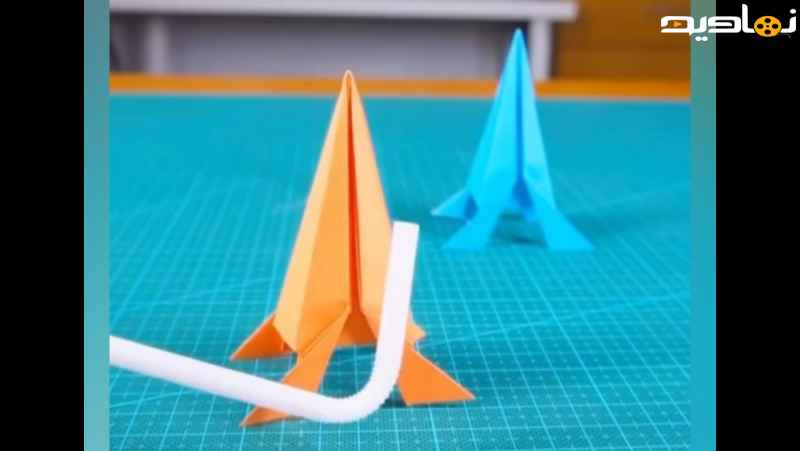 آموزش اوریگامی موشک با کاغذ رنگی و نی نوشابه