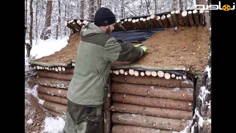 در وسط جنگل زمستانی، یک کلبه گرم ساخت