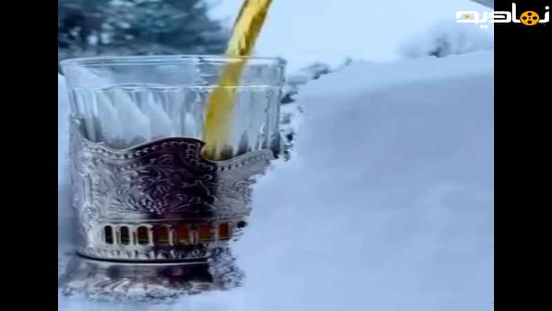 کلیپ چای داغ در هوا و طبیعت برفی