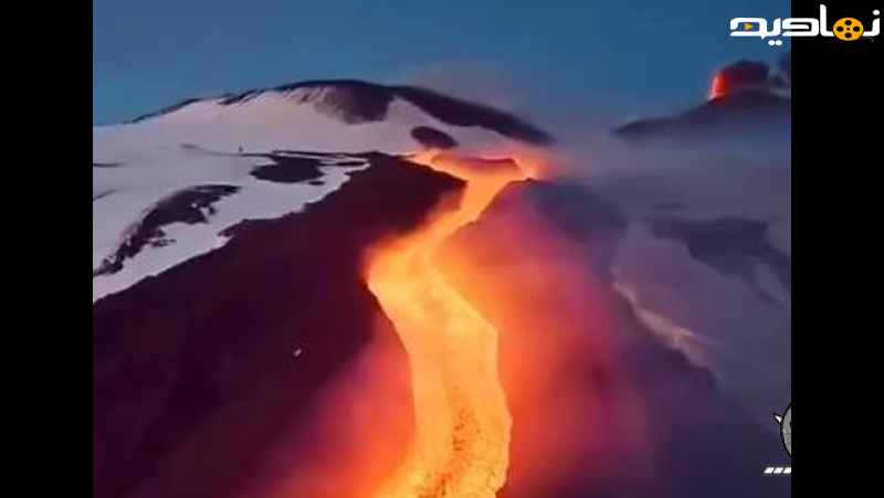آتش در یخ گدازه مذاب از دامنه های برفی کوه اتنا در سیسیل، ایتالیا سرازیر می شود. رنگین کمان
