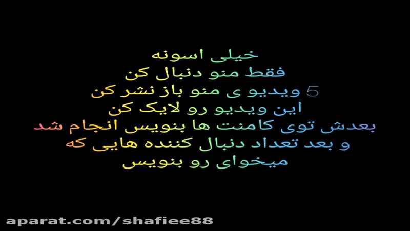 خیلی اسوناول منرو فالو کنبعدش همین ویدیو رو لایک کنبعدش 5 تا از ویدیو های منو باز نشر کنبعدش توی کامنت ها بنویس انجام شدتا 10 روز اول ممکنه یادم بره هر روز گیر بدهولی بعد از ده روز گیر نده خودم برات واریز می کنم