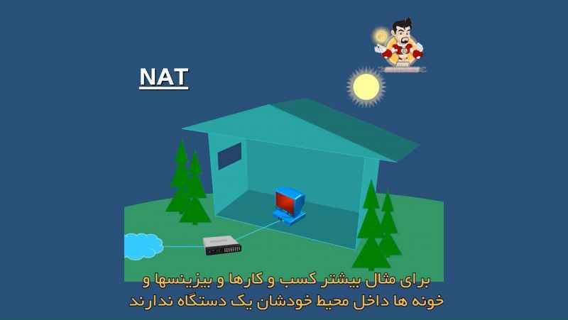 NAT (Network Address Translation) روشی برای حفاظت از آدرس IP است. NAT آدرس های IP موجود در یک شبکه داخلی(private) را به یک آدرس IP واحد ترجمه می کند. در واقع NAT، آی پی Private در شبکه ی داخلی را به IP Public برای استفاده در اینترنت تبدیل می کند. این آدرس (Public) اغلب توسط روتر مورد استفاده قرار می گیرد که pc ها را به اینترنت متصل می کند.